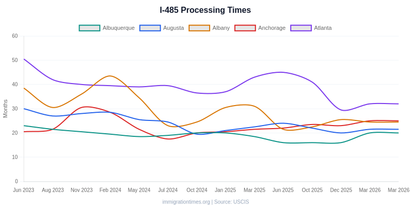 ImmigrationTimes.org. (2026). I-485 Processing Times. Retrieved Mar 29, 2026, from https://immigrationtimes.org/forms/i-485/