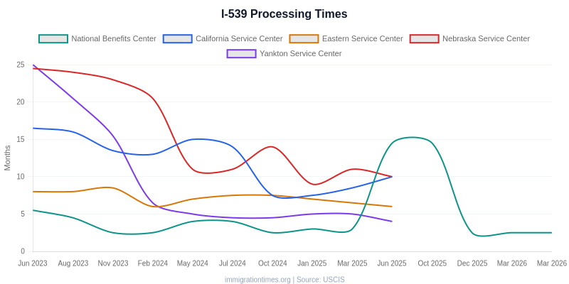 ImmigrationTimes.org. (2026). I-539 Processing Times. Retrieved Mar 29, 2026, from https://immigrationtimes.org/forms/i-539/