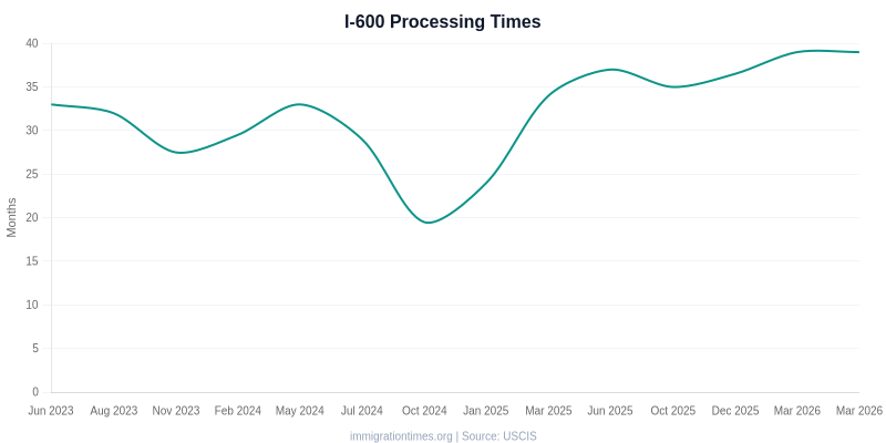 ImmigrationTimes.org. (2026). I-600 Processing Times. Retrieved Mar 29, 2026, from https://immigrationtimes.org/forms/i-600/