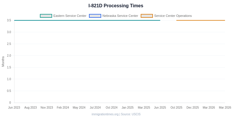 Current USCIS I-821D processing times range from 3.5 mo to 3.5 mo depending on the service center. Updated Mar 29, 2026.