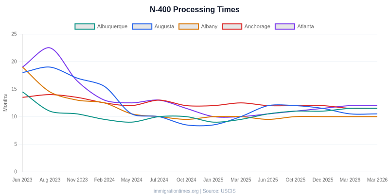 ImmigrationTimes.org. (2026). N-400 Processing Times. Retrieved Mar 29, 2026, from https://immigrationtimes.org/forms/n-400/