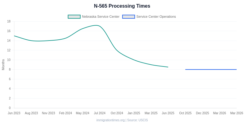 ImmigrationTimes.org. (2026). N-565 Processing Times. Retrieved Mar 29, 2026, from https://immigrationtimes.org/forms/n-565/